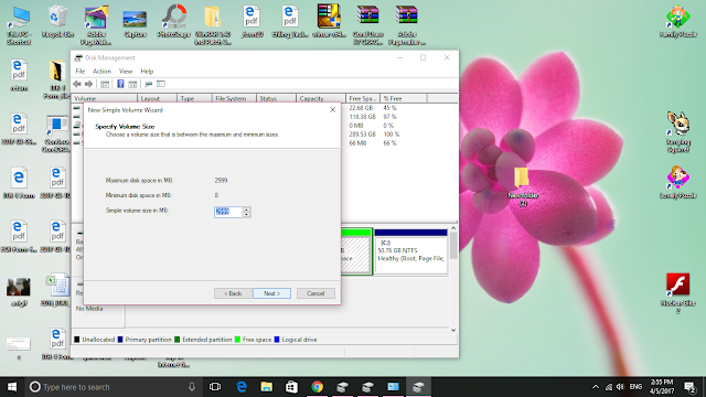 Step 10. Click next . You need to enter the size of disk and go next and select file system NTFS . Click next and then finish.